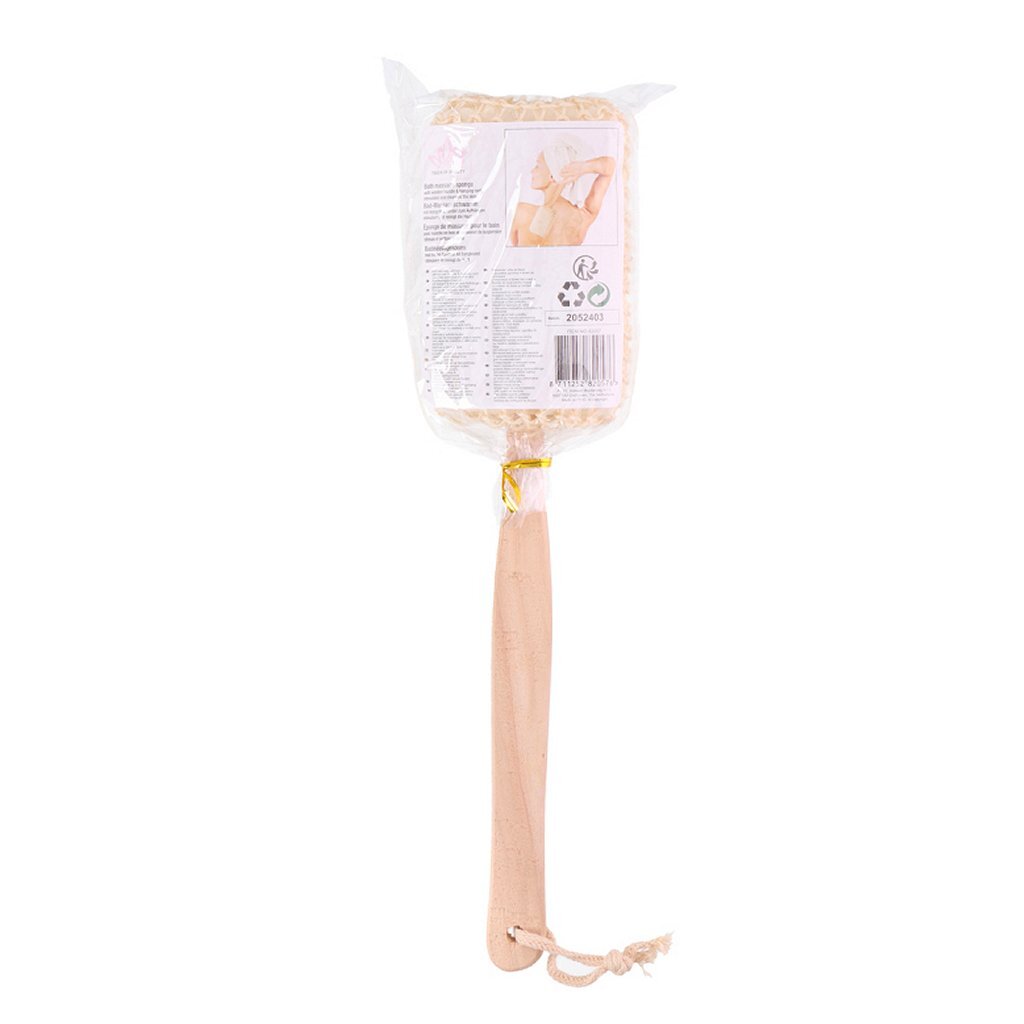 Luxemassagespons met houten handvat die zowel tijdens een bad als onder de douche kan worden gebruikt.Ideaal om te ontspannen na een dag werken of een sportdag.