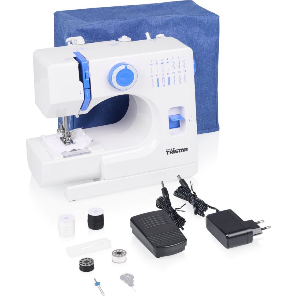 De veelzijdige SM-6003 naaimachine vanTristar is makkelijk in gebruik. Met 14 ingebouwde naaipatronen, een praktische vrije arm, automatische draadinrijger en LED-verlichting maakt deze naaimachine al jouw creatieve projecten eenvoudiger en efficiënter. Of je nu een beginner bent of een ervaren naaister, de naaimachine biedt gebruiksgemak, precisie en betrouwbaarheid voor elk naaiproject. De Tnaaimachine beschikt over 14 ingebouwde naaipatronen, perfect voor allerlei soorten projecten. Van eenvoudige steken tot decoratieve ontwerpen: je kunt jouw creativiteit volledig de vrije loop laten. Daarnaast zorgt de 4-staps knoopsgatfunctie ervoor dat je eenvoudig en snel nette knoopsgaten kunt maken. Dankzij de vrije arm kun je gemakkelijk rondingen en smalle stukken, zoals mouwen en broekspijpen, naaien. Je schuift het kledingstuk eenvoudig om de vrije arm heen, zodat je gemakkelijker en preciezer kunt werken zonder de stof te beschadigen. De automatische draadinrijger, draadknipper en spoelopwindfunctie besparen tijd en maken het hele proces soepel. De instelbare draaddruk zorgt voor strakke en nauwkeurige steken, ongeacht het type stof. De ingebouwde LED-verlichting zorgt voor optimale zichtbaarheid, zelfs bij weinig licht. De automatische snelheidscontrole helpt je om in een constant tempo te werken. Met de reverse-functie kun je gemakkelijk achteruit naaien, wat vooral handig is bij het verstevigen van naden. Door aan het begin en einde van een naad een paar steken achteruit te naaien, voorkom je dat de draad loskomt en zorg je voor een stevige afwerking. Dankzij de tweelingnaaldoptie kun je met twee naalden tegelijkertijd naaien, wat zorgt voor een professionele uitstraling.